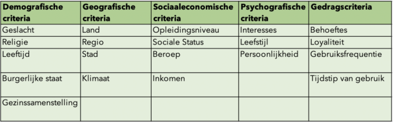 - Psychografische criteria.